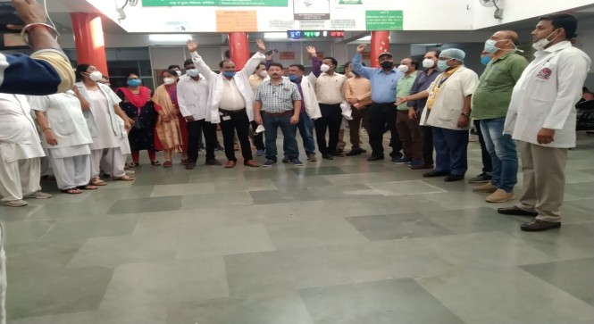 स्वास्थ विभाग द्वारा मनमानी तरिके से किये जा रहे स्थानन्तरण के विरोध में लोकबन्धु चिकित्सालय में सुबह से ही डॉक्टर सहित समस्त स्टाफ ने दो घंटे के लिए कार्य बहिष्कार करते हुए स्वास्थ विभाग के खिलाफ जमकर नारेबाजी कर अपना रोष व्यक्त किया ! वही चिकित्सालय में ओ.पी.डी सहित समस्त विंग में अचानक हुए कार्य वहिष्कार से भर्ती मरीजो सहित ओ.पी.डी में आये मरीजो को इलाज के लिए कठिनाइयों का सामना करना पड़ा। ! लोकबन्धु चिकित्सालय परिवार ने सरकार को चेतावनी देते हुए कहा है कि , यदि हमारी मांगे न मानी गयी तो 13 जुलाई से आंदोलन तेज कर दिया जाएगा ! जिसकी समस्त ज़िम्मेदारी स्वास्थ्य विभाग सहित सरकार की होगी !
