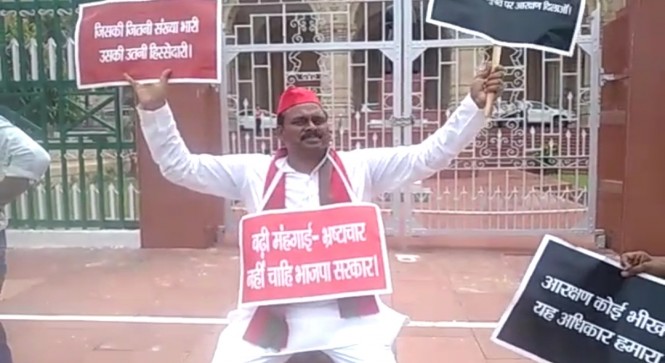 तीसरे दिन सपा ने महंगाई को लेकर विधानसभा गेट पर प्रदर्शन किया,