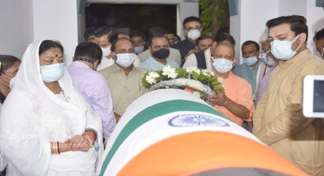 मुख्यमंत्री योगी नें कल्याण सिंह के पार्थिव शरीर पर पुष्प अर्पित कर श्रद्धांजलि प्रदान की