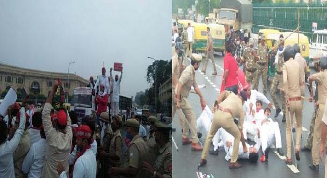 पेट्रोल और डीजल के दाम को लेकर प्रदर्शन कर रहे सपा कार्यकर्ताओं पर लाठीचार्ज