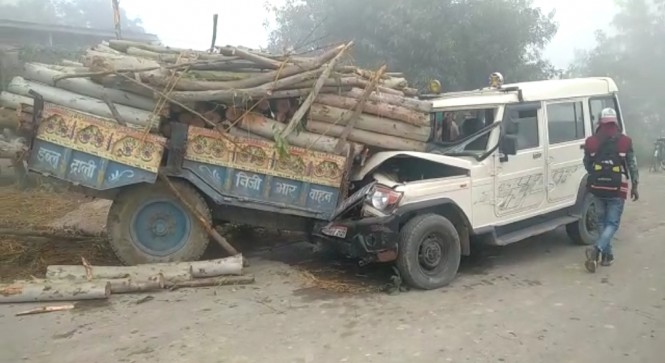 श्रावस्ती मे सड़क किनारे खड़ी ट्राली में घुसी बोलेरो