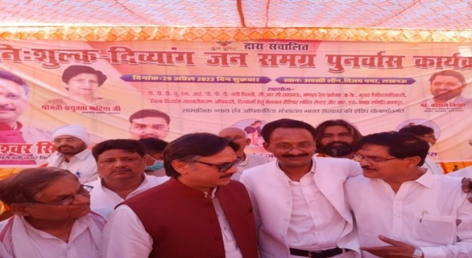 जनपत की खबर Apr 29, 2022 at 06:48 PM , 334लखनऊ, दिव्यांगो के पुनर्वास एवं उनको आत्म निर्भर बनाने के उद्देश्य से, सरोजनी नगर से भाजपा विधायक डा राजेश्वर सिंह के आग्रह पर, युग दृष्टि संस्था द्वारा, शुक्रवार दोपहर, कानपुर रोड कृष्णा नगर स्थित अवस्थी लान में दिव्यांगो के लिए एक बड़े कार्यक्रम का आयोजन किया गया, युग दृष्टि संस्था के अध्यक्ष राजेश शुक्ला ने मंच पर उपस्थित सभी मुख्य अतिथि सहित सभी सम्मानित जनों को पुष्प गुच्छ भेंट कर सम्मानित किया।कार्यक्रम में आए दिव्यांग जनों को, युग दृष्टि संस्था द्वारा व्यवसायिक प्रशिक्षण, कृत्रिम अंग, व्हील चेयर, ट्राई साइकिल, ब्लाइंड स्टिक, वॉकर, कान की मशीन, पोलियो कैलिपर्स बौद्विक अक्षम दिव्यांगजनों हेतु ( एम.एस. आई.ई.डी. किट),वॉक चिकित्सा यन्त्र वितरित किए जाने के लिए परिक्षण किया गया। सरकारी सुविधाओं का दिव्यांगों को लाभ मिले इसके लिए, मुख्य चिकित्साधिकारी के सहयोग से विकलांगता का मेडिकल प्रमाण पत्र, रेल पास, बस पास, विकलांग कल्याण विभाग के सहयोग से बनाए गए। इस दौरान दिव्यांगता के आंकलन के लिए दिव्यांगजनों के आंकलन परीक्षण की भी व्यवस्था की गई। इस अवसर पर विधायक डा राजेश्वर सिंह ने अपने सम्बोधन मे युग दृष्टि संस्था के अध्यक्ष राजेश शुक्ला द्वारा दिव्यांगो के लिए किए गए कार्यों की सराहना की,उन्होंने अपील की अगर एक सक्षम नागरिक असमर्थ लोगों की आंशिक मदद भी करने लगे तो समाज की स्थितियां बदल सकते हैं। संस्था के अध्यक्ष राजेश शुक्ला ने आयोजन में शामिल सभी सम्मानित आगंतुकों का आभार जताया।और संस्था द्वारा जरूरतमंद लोगों की सेवा करते रहने की बात कही।