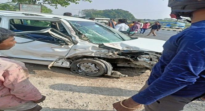 अनियंत्रित डीसीएम ने वैगनआर कार में जोरदार मारी टक्कर कार के उड़े परखच्चे