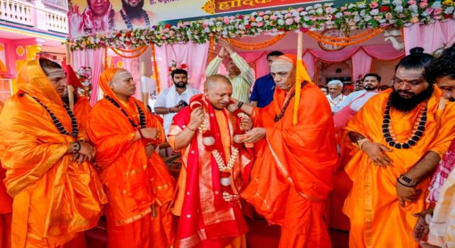 जंगमवाड़ी मठ में आयोजित पट्टाभिषेक कार्यक्रम में शामिल हुए योगी