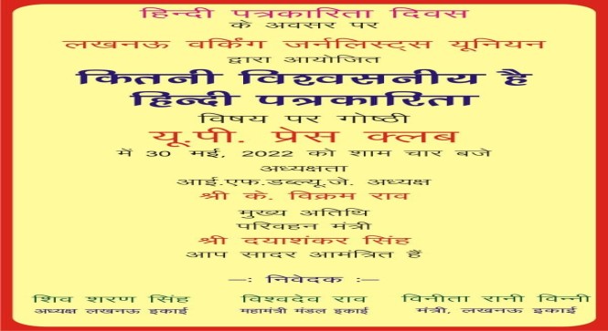 हिन्दी पत्रकारिता दिवस के अवसर पर यूपी प्रेस क्लब में कल संगोष्ठी का आयोजन