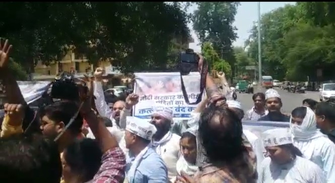 आम आदमी पार्टी के कार्यकर्ताओं ने किया प्रदर्शन।