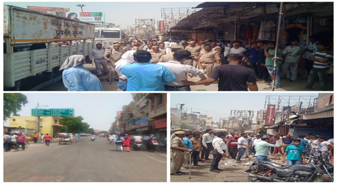 सडको पर कब्जा करके अवैध रूप से दुकानों को लगाने वालों के विरुद्ध चलाया गया अभियान।
