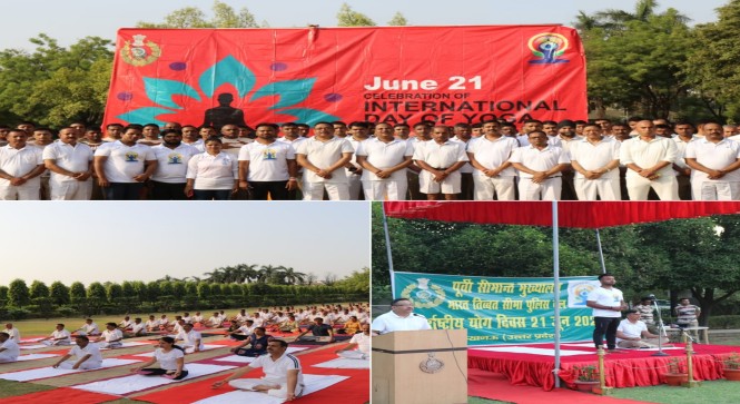 मुख्यालय पूर्वी फ्रंटियर, भा0ति0सी0पुलिस द्वारा आकांक्षा परिसर, जानकीपुरम्, लखनऊ में अधिकारियों, अधीनस्थ अधिकारियों, जवानों, उनके परिवारजनों के लिए दिनांक 21.06.2022 को 8वां अंतर्राष्ट्रीय योग दिवस के अवसर पर योग शिविर का आयोजन किया गया। इस शिविर में के0लो0नि0विभाग तथा वन एवं पर्यावरण विभाग के पदाधिकारियों को भी योगाभ्यास करवाया गया। इस वर्ष अंतर्राष्ट्रीय योग दिवस का थीम ‘‘मानवता के लिए योग’’ (Yoga for Humanity) रखा गया है। इस योग दिवस की थीम को कोविड-19 के प्रभाव को देखते हुए चुना गया है।