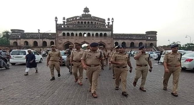 रूमी गेट चौकी से बड़ा इमामबाड़ा, टीले वाली मस्जिद, खदरा और मदेहगंज थाना तक हुआ पैदल रुट मार्च।