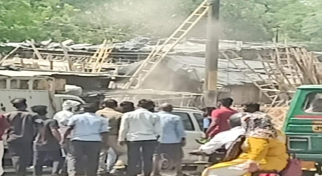 पुलिस ने लोगो की मदद से आग को बुझाया।