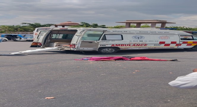 अंबेडकर मैदान बांग्ला बाजार चौराहे पर स्कूटी सवार दो महिलाओं में से एक की गई जान बीच चौराहे पर महिला के उड़े परखच्चे