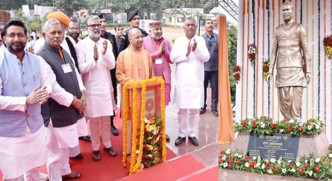 मुख्यमंत्री योगी ने पूर्व प्रधानमंत्री आदरणीय चन्द्रशेखर की आदम कद प्रतिमा का अनावरण किया