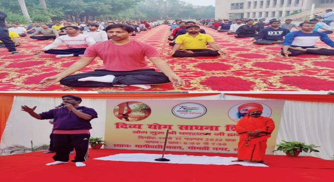 समाज कल्याण विभाग द्वारा प्रतियोगी परीक्षाओं की आवासीय निःशुल्क कोचिंग प्रदान किए जाने के उद्देश्य से संचालित छत्रपति शाहू जी महाराज शोध एवं प्रशिक्षण संस्थान, भागीदारी भवन, लखनऊ में योग गुरु श्री घनश्याम जी के सानिध्य से दिनाँक 11 से 17 नवम्बर 2022 तक चलने वाले दिव्य योग साधना शिविर का आज शुभारम्भ डॉ. हरिओम, प्रमुख सचिव, समाज कल्याण की उपस्थिति में हुआ। योग गुरु श्री घनश्याम जी द्वारा 1 घंटे से भी अधिक समय तक प्रतिभागियों को योग क्रियाओं की शारीरिक, मानसिक एवं आध्यात्मिक उपयोगिता के संदर्भ में विभिन्न आसनों एवं प्रवचनों द्वारा स्वप्रेरित किया गया।