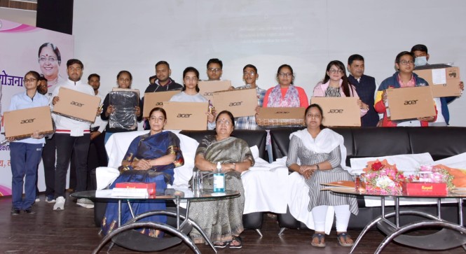 महिला कल्याण मंत्री ने बच्चों को वितरित किए लैपटॉप