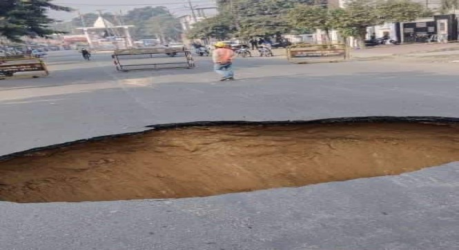 राजधानी में सड़क धँस गई,इलाक़े का नाम विकास नगर,बताया जा रहा कि,बसपा के जमाने में बनी थी सड़क,PWD ने बनाई थी सड़क,PWD के पास ही है मेंटिनेंस का काम..