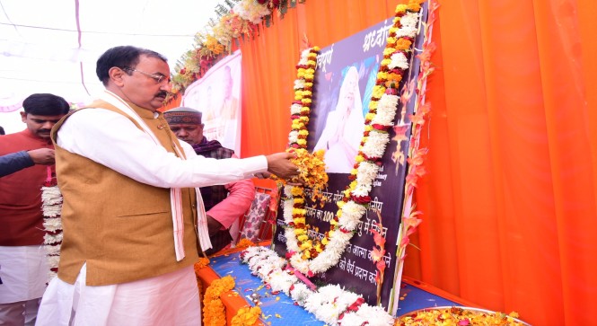 उत्तर प्रदेश के उपमुख्यमंत्री श्री केशव प्रसाद मौर्य ने शुक्रवार को जनपद वाराणसी के मा. प्रधानमंत्री जी के संसदीय क्षेत्र के आदर्श ग्राम पूरे में आयोजित जनता चौपाल में मा. प्रधानमंत्री श्री नरेंद्र मोदी जी की पूज्य माता श्रीमती हीराबेन जी के चित्र पर पुष्पांजलि अर्पित कर विनम्र श्रद्धांजलि दी तथा चौपाल में मौन रखकर ईश्वर से पुण्यात्मा को अपने श्रीचरणों में स्थान देने की प्रार्थना की।