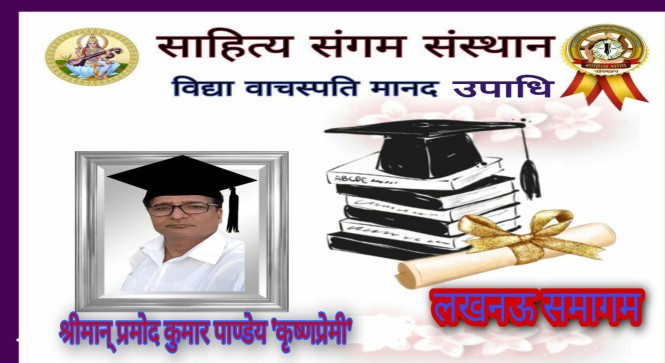 अन्य खबरे Jan 01, 2023 at 06:40 PM , 1006 दिल्ली:- इंजीनियर प्रमोद पाण्डेय के आराध्य भगवान श्री कृष्ण जी व जगत्जननी माँ श्री राधा जी हैं। प्रमोद कुमार पाण्डेय वर्तमान में लखनऊ विकास प्राधिकरण में अवर अभियंता के पद पर कार्यरत हैं, जो भगवान श्री राम की पावन नगरी श्री अयोध्या के निवासी हैं। जो साहित्य से अनभिज्ञ थे वे कहते हैं:- "मैं विज्ञान और इन्जीनियरिंग का छात्र रहा हूँ, मुझे हिन्दी साहित्य का क ख ग भी नहीं आता था। आज से करीब चार वर्ष पूर्व परम आदरणीय बड़े भाई डा. अनिल कुमार पाठक (आइ ए एस ) तत्कालीन जिलाधिकारी अयोध्या की एक पुस्तक का विमोचन तत्कालीन राज्यपाल महामहिम श्री राम नाइक के करकमलों से हुआ। बस यहीं से मेरा साहित्यिक सफर शुरू हुआ" डा. अनिल कुमार पाठक जी को पांडेय जी प्रेरक मानते हैं। उनके कारण ही उनकी रुचि साहित्य में बढ़ी बाद में वे सोशल मीडिया पर सक्रिय हुए। फेसबुक पर उनका जुड़ाव हिन्दी साहित्य की संस्था साहित्य संगम संस्थान दिल्ली से हुआ जहाँ पर उनकी मुलाकात संस्थान के राष्ट्रीय अध्यक्ष आदरणीय श्री राजवीर सिंह मंत्र जी से हुई। आदरणीय मंत्र जी का परम पावन स्नेह पाकर वे हिन्दी साहित्य में अपनी रुचि और जानकारी दोनों बढ़ाते गए। आदरणीय गुरुदेव मधुब्रत जी के पावन निर्देशन में छंदशाला के माध्यम से वे छंदाधारित रचनाएं लिखने लगे। इस साहित्यिक उपलब्धि का श्रेय वे आदरणीय श्री मंत्र जी, आदरणीय गुरुदेव श्री मधुब्रत जी, आदरणीय भाई डा. अनिल कुमार पाठक जी समेत सभी साहित्यिक गुरुओं को देते हैं।