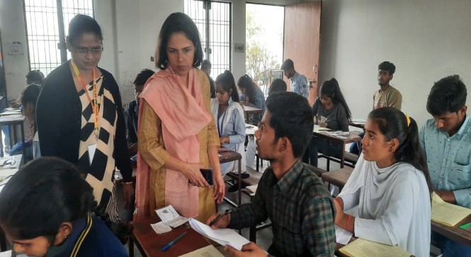 *निरीक्षण के दौरान संत एस राम इंटर कॉलेज के केंद्र व्यवस्थापक द्वारा बताया गया कि इस विद्यालय में 418 बच्चे एग्जाम दे रहे है जो कि 13 विद्यालयो के बच्चे हैं मंडलायुक्त ने परीक्षा केंद्र पर संबंधित से जानकारी लिया कि ड्यूटी पर लगाए गए कर्मचारी की संख्या कितनी है और किस संस्था से हैं*