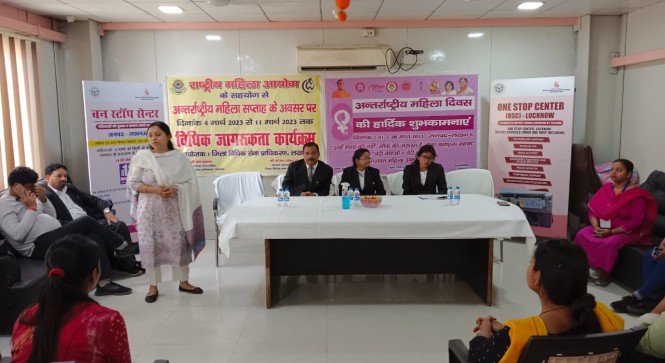 जनपत की खबर Mar 04, 2023 at 06:20 PM , 263लखनऊ। राष्ट्रीय विधिक सेवा प्राधिकरण, नई दिल्ली तथा उ0प्र0राज्य विधिक सेवा प्राधिकरण लखनऊ के निर्देशानुसार राष्ट्रीय महिला आयोग के सहयोग से जिला विधिक सेवा प्राधिकरण लखनऊ के तत्वाधान में जिला प्रोबेशन अधिकारी लखनऊ महिला कल्याण विभाग के साथ संयुक्त रूप से वन स्टाप सेन्टर लोक बन्धु राज नारायण संयुक्त चिकित्सालय आशियाना परिसर लखनऊ में अन्तर्राष्ट्रीय महिला सप्ताह 04 मार्च 2023 से 11 मार्च 2023 तक का शुभारम्भ करते हुये विधिक जागरूकता कार्यक्रम का आयोजन आज प्रातः 10ः00 बजे से किया गया।*