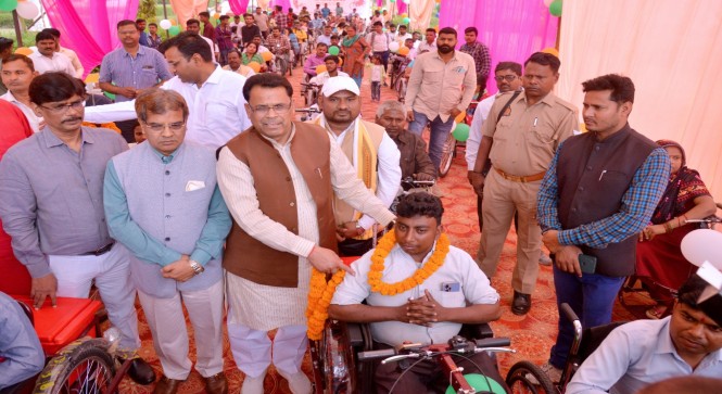 दिव्यांगजन मंत्री नरेन्द्र कश्यप ने 296 दिव्यांगजनों को