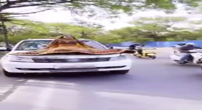 प्रयागराज के सिविल लाइन में कार की बोनट पर दुल्हन के लिबास पहन कर बना रही थी रील