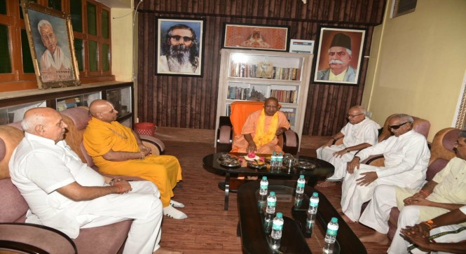 नृत्य गोपाल दास से सीएम योगी ने शिष्टाचार भेंट की